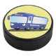 Cute blue modern bus cartoon illustration hockey puck