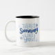 Cute Blue Monochrome Snowflake Motivational Two-Tone Coffee Mug