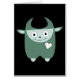 A cheerful and cute little blue monster illustration, with a heart design. Also available in red.