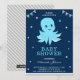 Invite your guests with this cute baby shower invitation featuring an adorable little octopus with vibrant elements against a navy blue background. Simply add your event details on this easy-to-use template to make it a one-of-a-kind invitation. Flip the card over to reveal a grey and white stripes pattern on the back of the card.
