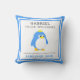 Cute Blue Penguin Baby Boy Birth Stats Cushion