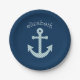 Cute Blue Polka Dot Anchor with Navy Custom Name Paper Plate