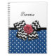 Cute Blue Polka Dots Red Rose Chevron Bow and Name Notebook