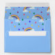 Send out your invitations and cards in style with this cute custom envelope that features a hand drawn repeating pattern with rainbows and rainbow coloured raindrops on the inside as well as a custom printed return address on the top flap. The return address is customisable. To edit the text, click "personalise this template". There is a rainbow adorning the back flap above the return address printed in a yellow font.
