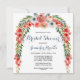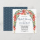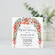 This pretty bridal shower invitation features a sweet floral arch straight from the garden with peachy pink and white flowers with botanical greenery. The back of the card has a blue background with light peach coloured polka dots. Perfect for a Spring Bridal Shower or a Summer Bridal Shower.