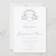 Explore our delightful French vintage preppy baby boy shower invitation showcasing a charming and cute baby blue wooden rocking horse with surrounding spring flower blooms and bow ribbon crest. This adorable design is perfect for welcoming your little one with joy and whimsy.