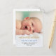 Cute Blue Script Photo Baby Announcement Postcard