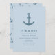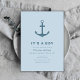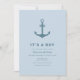 It's a boy!, Nautical baby shower theme, celebrate upcoming baby shower with our navy blue rustic minimalist nautical anchor in pastel blue colour. You can personalise your own text and colour via "personalise this design".