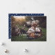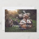 Custom blue photo holiday cards featuring a snow overlay and a beautiful festive script title on the front and stars on a plain blue background at the back. The background can be changed to any colour. Easily personalise these blue photo holiday cards with your image and a family name.