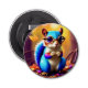 Very cute and compact little bottle opener. Also very fond of the magnet, both for sticking to the fridge and holding on to the bottle cap when trying to open it. Good quality print. As pictured.
