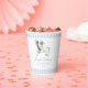 Elegant 'Stork baby delvery' themed baby boy shower paper cups featuring cute watercolor stork delivering a sweet baby boy and gingham pattern in between. Perfect for sweet boho style baby boy celebrations.