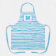 Cute Blue Stripes Custom Single Initial White Apro Apron