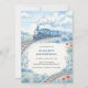 Cute Blue Train Watercolor Boys Birthday Party Invitation