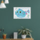 decorate your space with the whimsical charm of this blue tropical fish poster. featuring a delightful cartoon sea creature with pink fins and floral details, this high quality wall art brings a splash of color to any room. the wavy ocean background and bubbly accents make it an ideal choice for a nursery, kids bedroom, or bathroom. this vibrant print is a wonderful way to create an under the sea theme that both children and adults will enjoy.