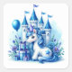 Cute Blue Unicorn and Fairytale Castle Square Sticker