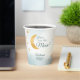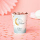These "We're Over the Moon" baby shower theme party paper cups have a whimsical gold moon and stars with a dreamy blue and white background. Personalise with name and shower date. For matching "We're Over the Moon" boy baby shower invitations and supplies, please view our collection on this page.