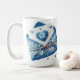 CUTE BLUE & WHITE CROCHET LOOK ENVELOPES COFFEE MUG