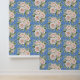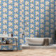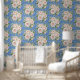 Cute Blue White Flower Pattern Kids Nursery Wallpaper.