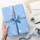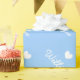 Cute Blue wrapping paper | heart and baby boy name. Adorable giftwrap for original baby shower presents. Blue and white love heart pattern for kids.