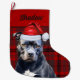 Cute Bluenose Pitbull Dog and Red Plaid Custom Large Christmas Stocking