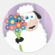 A cute blushing sheep holds a big bunch of blue, purple, pink and orange flowers in these cute sheep stickers. Stickers can also be used as fun envelope seals. Copyright © Lisa Marie Robinson All rights reserved. It is illegal to use or duplicate this, or any of our images, without written permission.