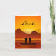 Cute Cartoon Silhouette Couple Boating LOVE Valentine's Day Greeting Card. Features a Mountain and Sunset Background. ~