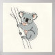 This boho line art poster features a cute koala drawing holding to a tree.