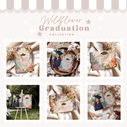 Invite your friends and family to celebrate your graduate’s special day with our Photo Stylish Wildflower Meadow Garden Graduation Invitation! Featuring a stunning wildflower meadow design, this invitation blends nature’s beauty with your personal photo, offering a fresh, modern look that’s as unique as your graduate. The soft, pastel colour palette and delicate floral details set a serene and elegant tone, while the customisable space allows you to add your photo, graduate’s name, graduation year, and event details. Whether you’re hosting an intimate gathering or a larger celebration, this invitation is the perfect way to mark the achievement and make your event feel unforgettable. Order now to send out your stylish and personalised graduation invitation!