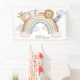 Make your little one's milestone celebration unforgettable with this Cute Boho Safari Animals 1st Birthday Welcome Banner. This beautiful design showcases sweet, watercolor illustrations of a baby giraffe, elephant, lion, and zebra peeking from soft white clouds, centered around a trendy, neutral boho rainbow. Finished with shimmering faux gold glitter accents, this banner is the perfect personalized decoration for a chic, modern jungle or safari-themed party for either a baby girl or boy. Easily customize the name and age to create a welcoming and adorable photo backdrop!