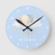 Cute Boho Watercolor Elephant Clouds Blue Nursery Round Clock