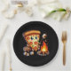 Cute bonfire pizza party paper plate