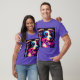 I give wanted to give this a 4 instead of a 5 because these Basic DARK T0shirts run unexpectedly SLIM or Narrow. Which is great if you do not have a potbelly, but I have a paunch. It isn't the shirt's fault that I've got a beer belly. The design and shirt itself is a quality cotton shirt. The color is more of a deep purple, but still a very pretty color. The Basic DARK T-shirts run a bit SLIMMER than the Basic Ts. The neck is a fraction narrower (or seems to be narrower) also. I'm a paunchy middle-aged woman and my neck is 12 inches (31cm) thick and the neckline fell about the same as in the photo of the man, and I had the desire to tug it a bit. So if you're a thick necked man or like loose shirts, be aware these are slimmer shirts. Once I get rid of my lockdown paunch it'll look great. The shirt washed well in cold water with no apparent bleeding. We don't have a dryer, so it hung dry. Did not shrink. Love the colors and the design. The design looks smaller on my shirt than it does on the model on-line. But still, it looks good on the shirt. The printing looks as it does on the model, just the size seems fractionally smaller. Washed garment in cold water, hung dry and design appeared unaffected.