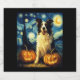 Cute Border Collie Dog Halloween Jack O Lantern Pumpkin Face Starry Night Van Gogh Style