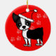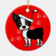 Cute Boston Terrier Cartoon Santa Hat Red Ceramic Tree Decoration