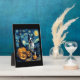 Cute Boston Terrier Dog Halloween Jack O Lantern Pumpkin Face Starry Night Van Gogh Style