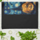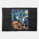 Cute Boston Terrier Dog Halloween Jack O Lantern Pumpkin Face Starry Night Van Gogh Style