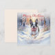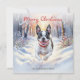 Cute Boston Terrier Dog In Winter Snow Christmas Holiday Card