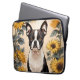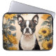 Cute Boston Terrier Yellow Sunflowers Laptop Sleeve