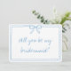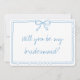 Cute Bow Handwritten Blue Bridesmaid Proposal Card