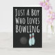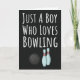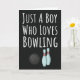 Celebrate your little bowling star with this adorable card! Featuring the simple yet powerful quote, **"Just A Boy Who Loves Bowling,"** this **unique** design is the perfect **themed** gift for a **baby boy**, young **son**, **grandson**, or **kids** who adore the lanes. This **novelty** card is a wonderful way to encourage a young **bowler's** passion and celebrate his love for strikes and spares, making it perfectly **related** for any bowling **lover**.