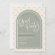 Bows are in! Celebrate your grad in style with these cute graduation party invitations. Grad Party is shown in a trendy handwritten script, along with a pattern of bows in the background. Shown in a palette of sage green, beige, dark green, and white, but all colours are editable by you! © Kimbellished, LLC