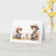 Cute Boy and Girl Reading Book Rabbits Flowers Card