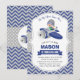 Cute Aeroplane 1st Birthday Party Invitations | Blue Grey Plane Boy First Birthday | Chevron Pattern Kids Birthday Invitations