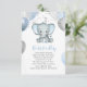 This adorable books for baby card features blue and grey baby boy elephant with balloons and confetti. Back features soft blue watercolor. Easily customised for your event by clicking personalise.