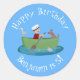 Cute boy sailor and dog rowing boat cartoon classic round sticker