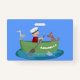 Cute boy sailor and dog rowing boat cartoon ID badge