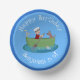 Cute boy sailor and dog rowing boat cartoon paper plate