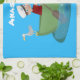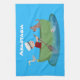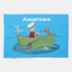 Cute boy sailor and dog rowing boat cartoon tea towel