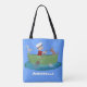 Cute boy sailor and dog rowing boat cartoon tote bag