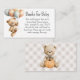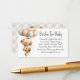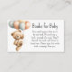 A sweet "books for baby" enclosure card to add with your baby shower invitations. Each guest brings book for baby to the shower instead of a card. The book can be new or gently used, making a nice start to the building of a little library for baby. This design features an adorable baby boy teddy bear carrying a bunch of balloons. The back of the card has the bear sitting with an autumn pumpkin on a neutral beige gingham check background.